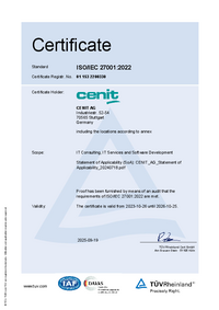 TISAX® is a registered trademark of the ENX Association. CENIT AG has no business relationship with the ENX Association. The mention of the TISAX® trademark does not imply any statement by the trademark owner regarding the suitability of the services advertised here.