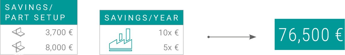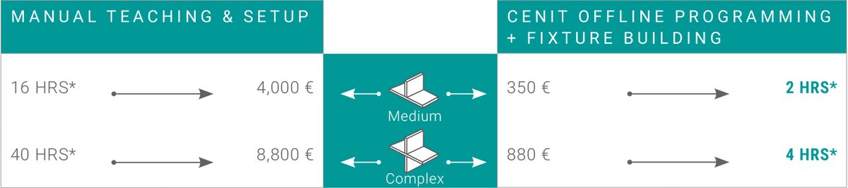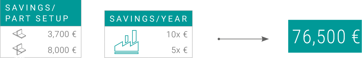 The introduction of offline programming assumes an investment of approximately 50,800 euros. This amount consists of around EUR 33,600 in fixed costs (calibration of a cell with a robot, software implementation, training of two members of staff) and EUR 17,200 in variable costs (annual software maintenance). Calculation of the ROI refers to the production of 10 parts of medium complexity and 5 parts of high complexity per year.
